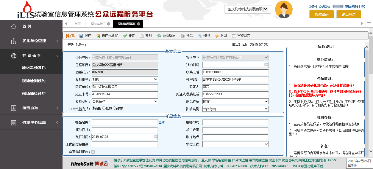 (委托收樣,樣品管理、合同管理、收費管理、檢測/審核/批準(zhǔn)管理,報告打印管理)