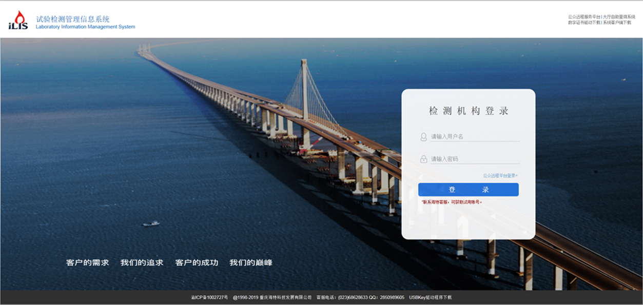系統(tǒng)所有功能均基于Internet互聯(lián)網(wǎng)運行,軟件使用不受時間和地域的限制,現(xiàn)場檢測可即時錄入檢測數(shù)據(jù),出差也可簽發(fā)檢測報告,只需要輸入一個網(wǎng)址即可。得益于先天的架構(gòu)優(yōu)勢,本系統(tǒng)具有良好的擴展性,如工地試驗室管理、駐外分室管理、現(xiàn)場試驗檢測等均可實現(xiàn)在線分布式信息化無縫管理。