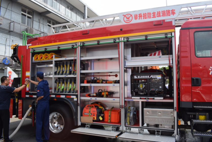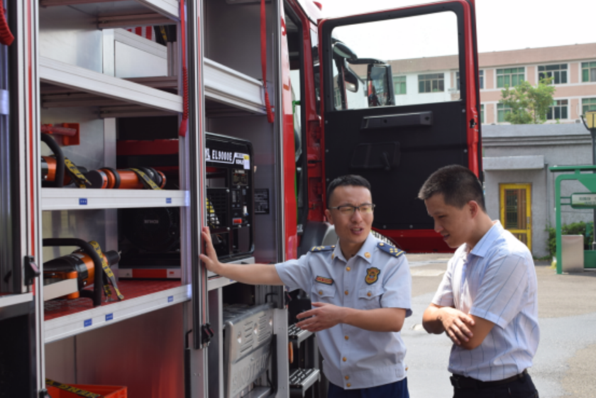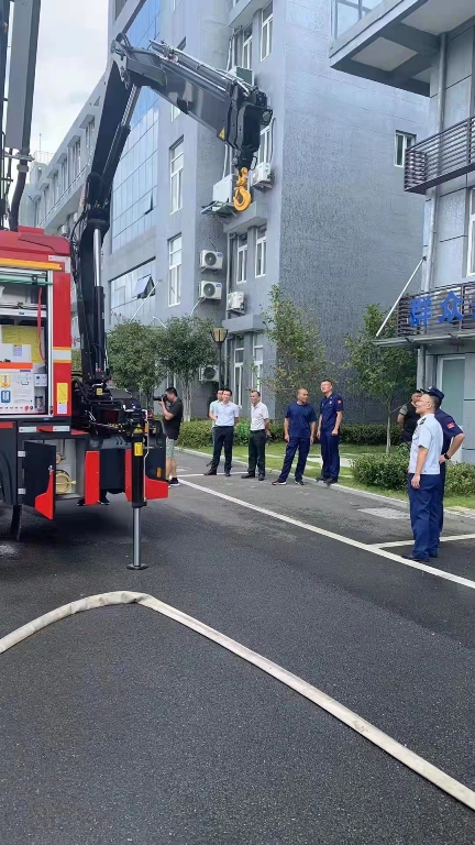 演示結束后,鎮(zhèn)政府各級領導及平陽縣大隊領導來到新購的舉升搶險主戰(zhàn)消防車前,詳 細參觀、了解消防車輛技術性能,觀摩了新型消防車輛器材的展示和車輛各種功能操作 演示,并對我公司研制的新產品進行了點評,給予了高度的贊許,稱此款車型最大化的 滿足了老舊小區(qū)、狹窄街道、城鄉(xiāng)低建筑物等滅火救援工作的需要。