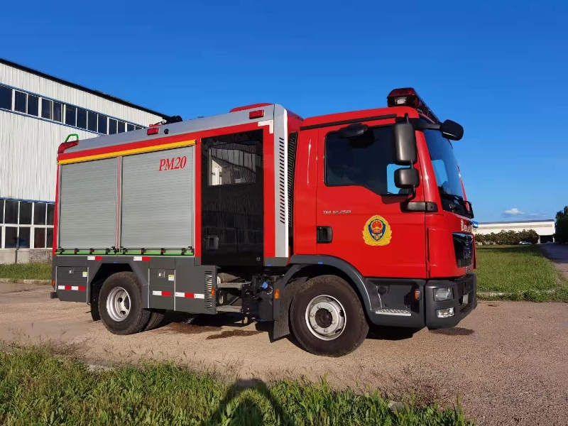 壓縮空氣系統(tǒng)采用集成模塊式系統(tǒng) ,結構緊湊、性能優(yōu)良、操作簡便,空間利用率高。 車輛底盤為德國曼TGL12.250型底盤,發(fā)動機型號MAN DO836LFLAK,功率為184kw,國六排 放標準,軸距3050mm,罐體材質采用耐低溫高分子化合物,容罐容量:水1900kg,A類 泡沫200kg;消防泵為50FBU(美國希爾);集成式壓縮空氣泡沫系統(tǒng),型號:PTO- CAFS120型,型式:全自動壓縮空氣A類泡沫系統(tǒng),曲臂升降照明系統(tǒng),主照明燈功率: 216W×2,移動照明燈功率:500W×2只,升降桿:鋁合金,云臺:鋁合金,水平垂直旋 轉角度:420°,牽引絞盤系統(tǒng)為杭州天銘FEW13500,大流量消防水槍。