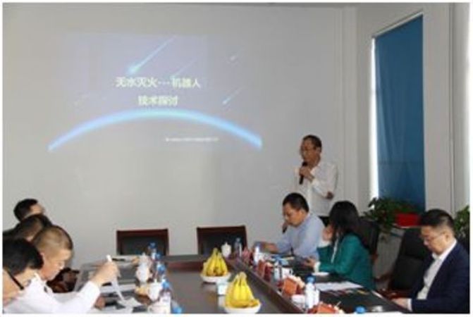 研討會(huì)上,遼寧衡業(yè)集團(tuán)張鳳清董事長(zhǎng)對(duì)市、區(qū)領(lǐng)導(dǎo)、高校教授及消防領(lǐng)域?qū)<业牡絹?lái)表示了熱烈的歡迎。鞍山衡業(yè)專用汽車制造有限公司謝奕波董事長(zhǎng)對(duì)國(guó)內(nèi)外消防滅火機(jī)器人的現(xiàn)狀進(jìn)行了匯報(bào),并對(duì)未來(lái)機(jī)器人技術(shù)與現(xiàn)場(chǎng)專家進(jìn)行了深入的探討,重點(diǎn)探討了無(wú)水滅火機(jī)器人技術(shù)的可行性以及鞍山衡業(yè)專用汽車制造有限公司面臨關(guān)鍵性技術(shù)難題,并希望與高校和相關(guān)企業(yè)實(shí)現(xiàn)合作,攻克難題。經(jīng)過(guò)探討,鞍山衡業(yè)專用汽車制造有限公司分別與西安交通大學(xué)、遼寧工業(yè)大學(xué)和蘇州新鼎應(yīng)急裝備科技有限公司達(dá)成合作,并簽署了產(chǎn)學(xué)研合作協(xié)議。